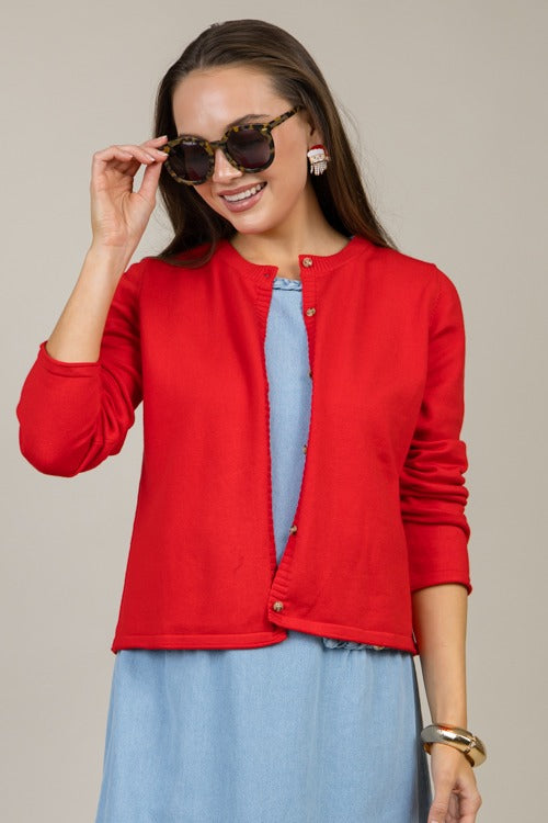 - Textured gold buttons sewn in place